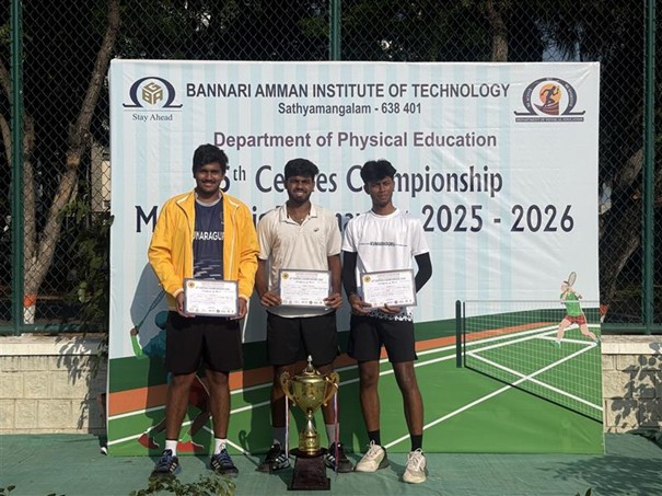 Akhilesh (25MBA014), representing KCT Business School, participated in the Centies Tennis Tournament hosted by Bannari Amman Institute of Technology on February 14, 2026. He distinguished himself by securing the Winner Position, bringing honor and pride to the institution through his outstanding performance.