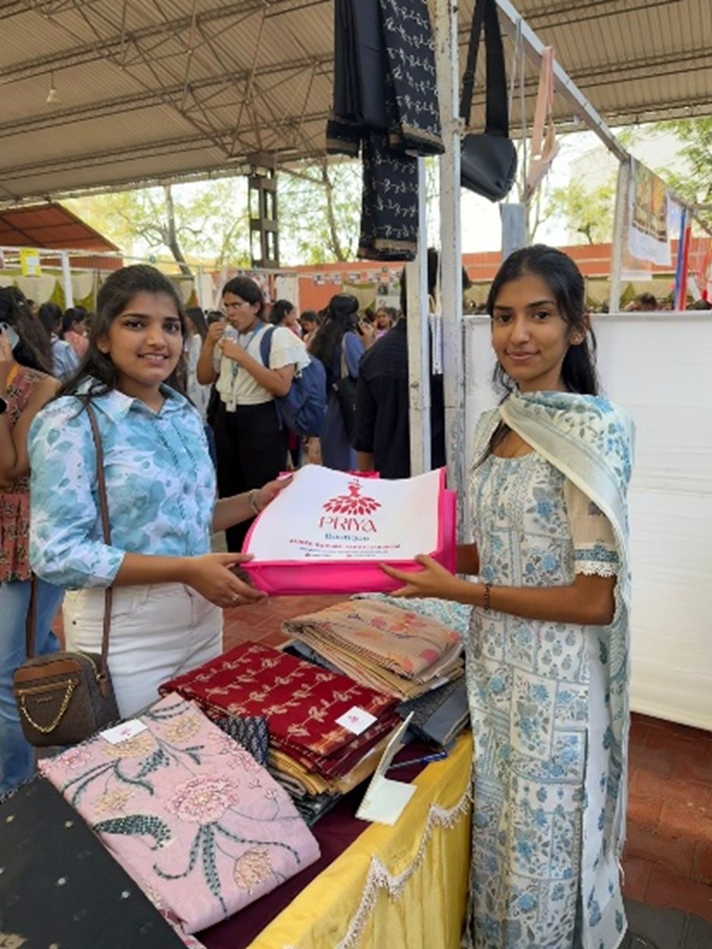 Shaparna K (25MBA133) and Jananika E (25MBA054), I MBA students, participated in EvanzA’26 conducted at PSGR Krishnammal College for Women on February 12 and 13, 2026. As part of the event activities, we put up a stall that provided us with practical exposure and entrepreneurial experience. Through this participation, we enhanced our customer interaction skills, gained insights into real-time business operations, and connected classroom learning with hands-on practice.